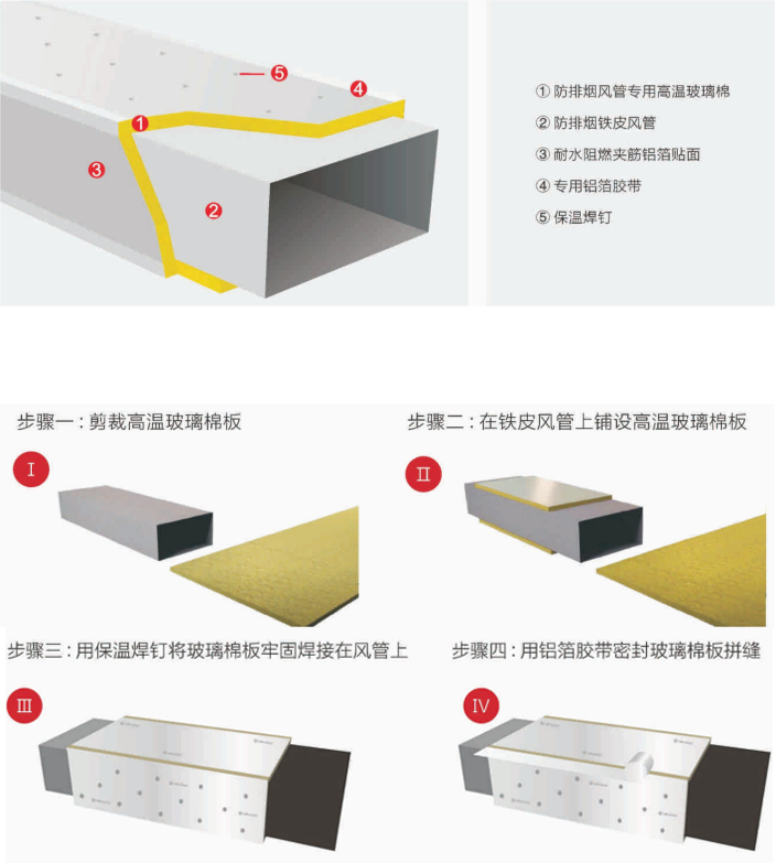 1、高温玻璃棉安装宜用焊钉固定,铝箔胶带封边。
