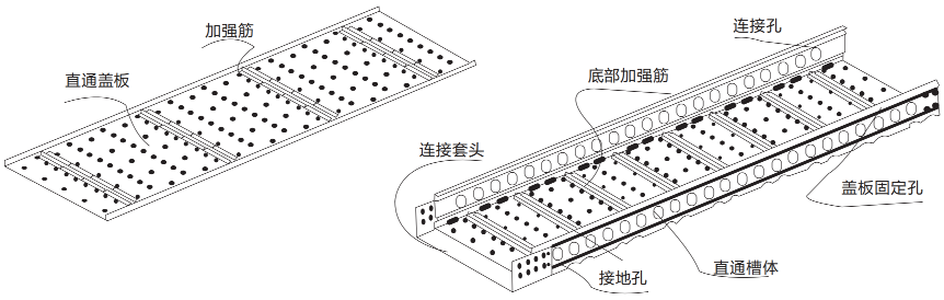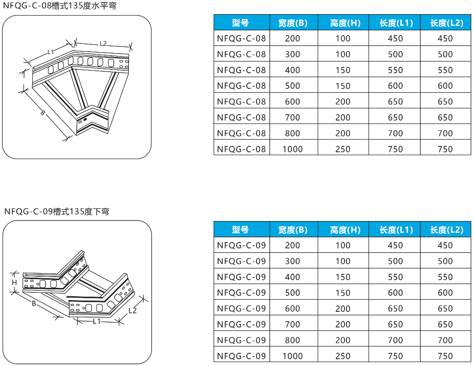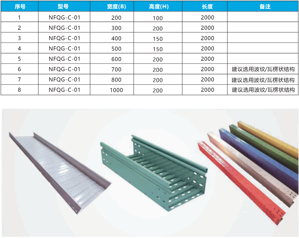 公司最新研制的NFQG-C型节能高强彩钢板槽式桥架,该产品在设计上槽盒左右侧、底板为一体,然后在槽盒内侧左右、上下均选用不同规格的半圆形加强筋来加强,合理计算钢制电缆桥架的额定均筋负载重量,用冲压技术和设备冲压在槽盒托盘及槽盒盖板内侧。产品设计新颖,具有自重轻、外表美观、槽盒连接快、安装方便而深受用户欢迎。本产品已通过国家权威检测机构合格发证。