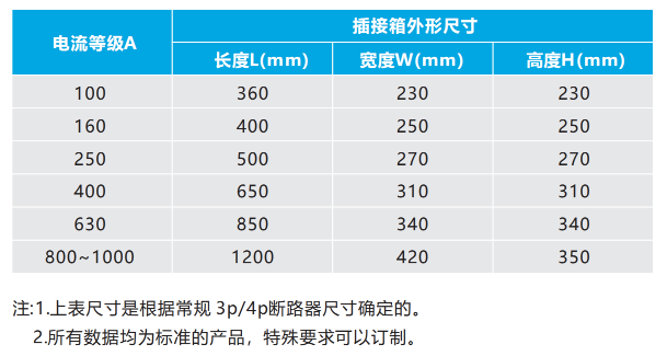 非标尺寸和大电流等级的插接箱请与厂商联系